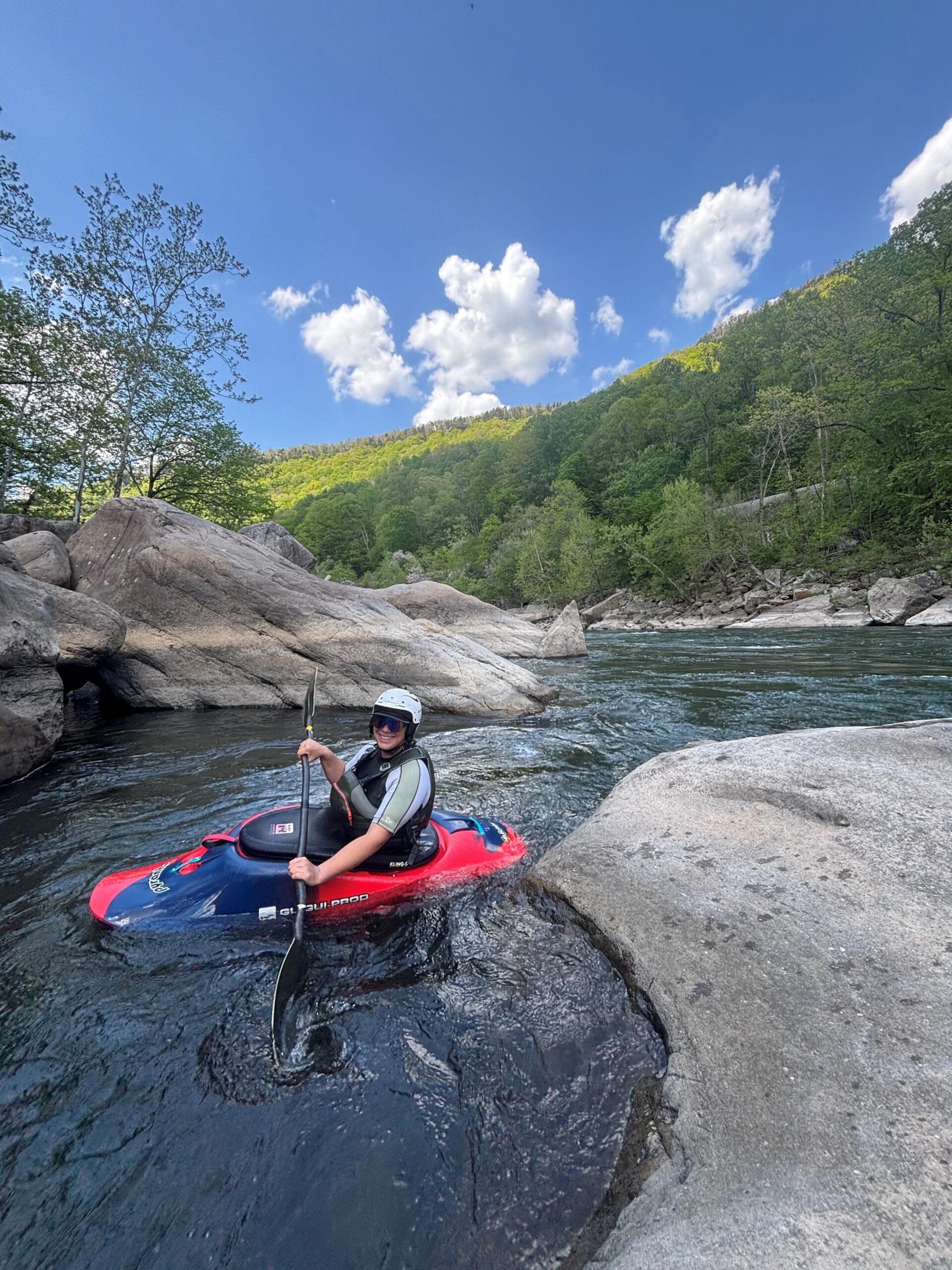 Enter, an opportunity to paddle the Helectron on a 5-hour New River playboat lap (iykyk), and exit, someone closer to a playboater than they’ve ever been. Now, I find myself singing the praises of a boat I really have not enough expertise to speak on; but as a “non-playboater”, who tries to occasionally playboat, I can’t help but love the Helectron.