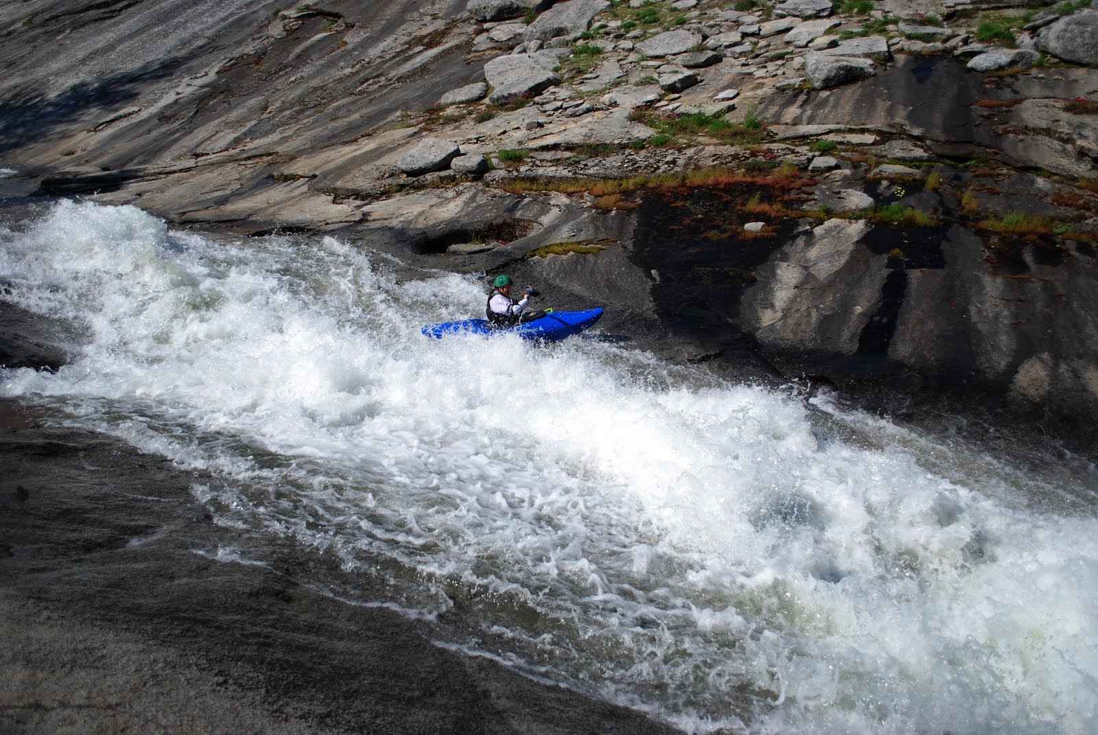 After spending five days in the Kern drainage (see previous post), on our sixth day in California we broke camp early and began driving north. It took a bit longer than we expected, but by mid afternoon we met up with another truckload of southeasters in the town of Three Rivers to discuss our next move. Almost everything in the Kaweah drainage was still too high, but Greg Garrard and Chas Lemley suggested that we join them for a run on the Shatner Ranch section of the South Fork of the Kaweah. They had made the run the previous day and assured us would still be at a good level. The S.F. of the Kaweah wasn’t really on our radar, but with the opportunity to join up with a solid crew who had done the run the day before, we quickly agreed and followed Greg to the put-in. A look downstream from the bridge at the put-in gave us a preview of the continuous boogie water that would characterize the entire run. [To get an idea of just how continuous, check out some helmet cam footage shot by Austin Nickell HERE]